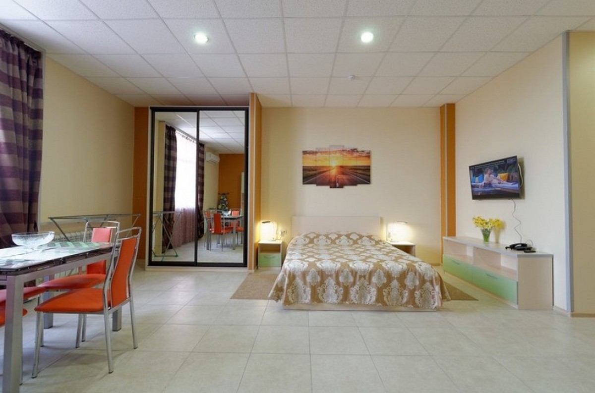 Просторные номера подходят как для короткого отпуска, так и для длительного проживания: в каждом апартаменте есть кухня, техника, посуда и всё необходимое для комфортной жизни.
