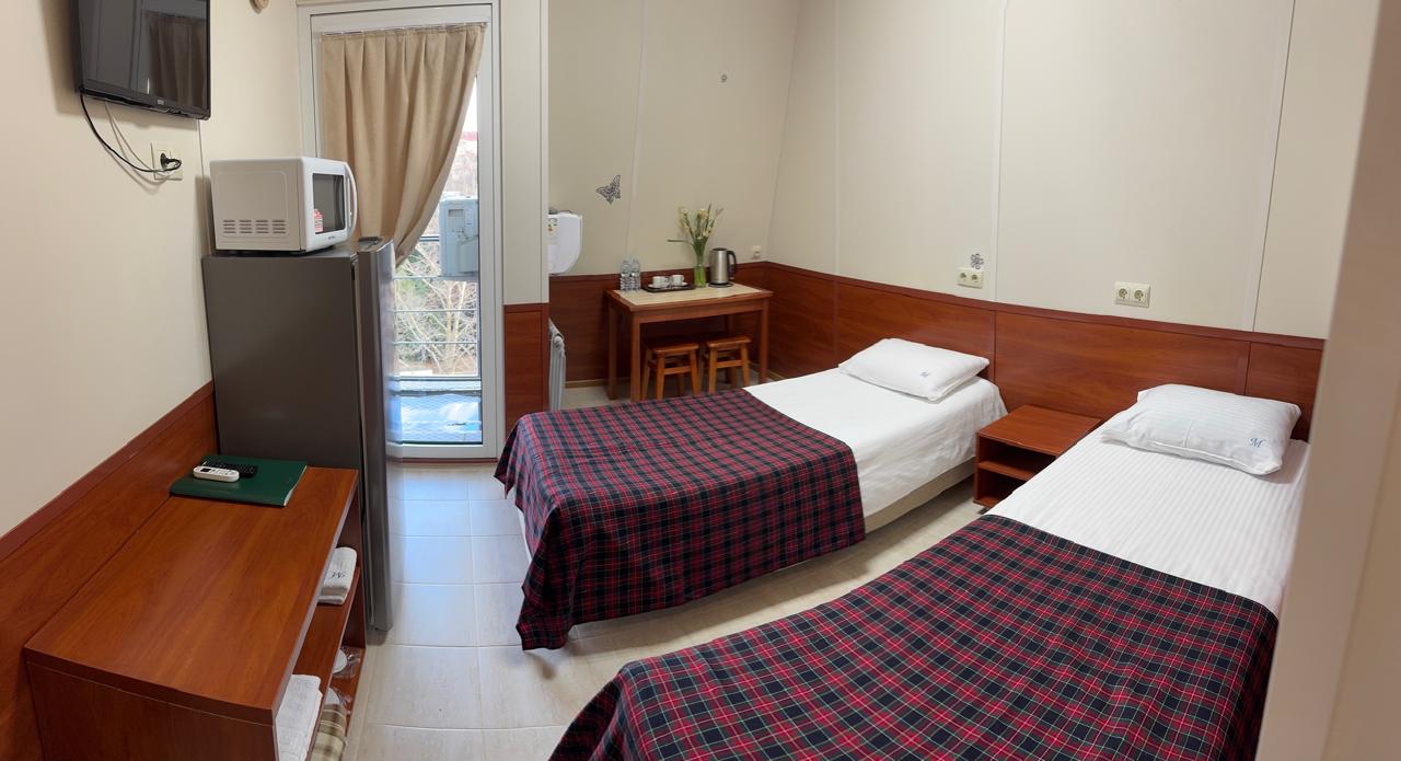 Оснащение номера и мебель: две раздельные кровати, кондиционирование/система климат-контроля, шкаф, тумба, балкон, утюг на этаже.