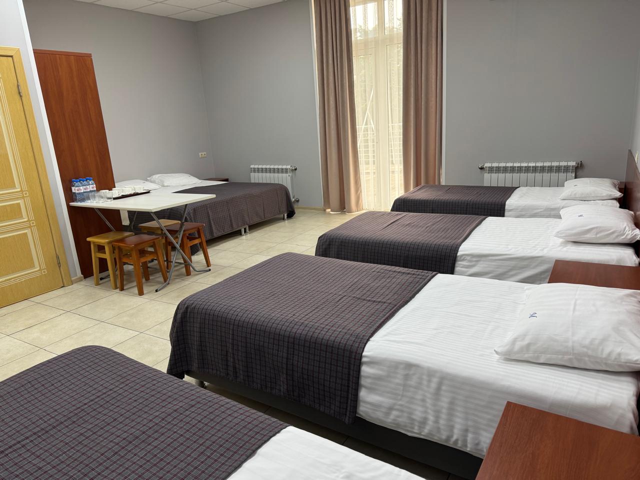 Оснащение номера и мебель: шесть раздельных кроватей, кондиционирование/система климат-контроля, шкаф, тумба, утюг, балкон.